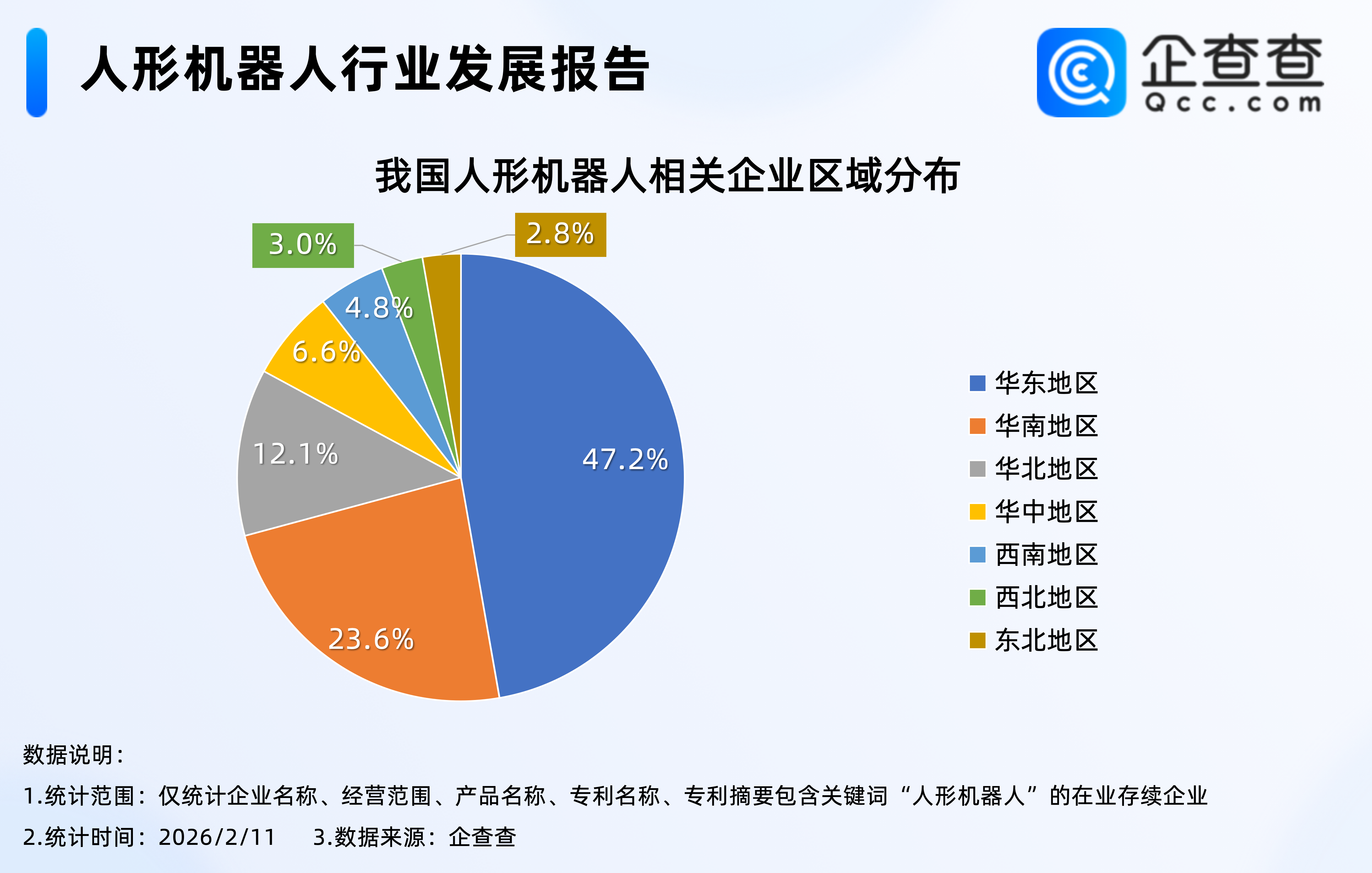 2.从区域分布来看:华东地区最多,占比47.2%
